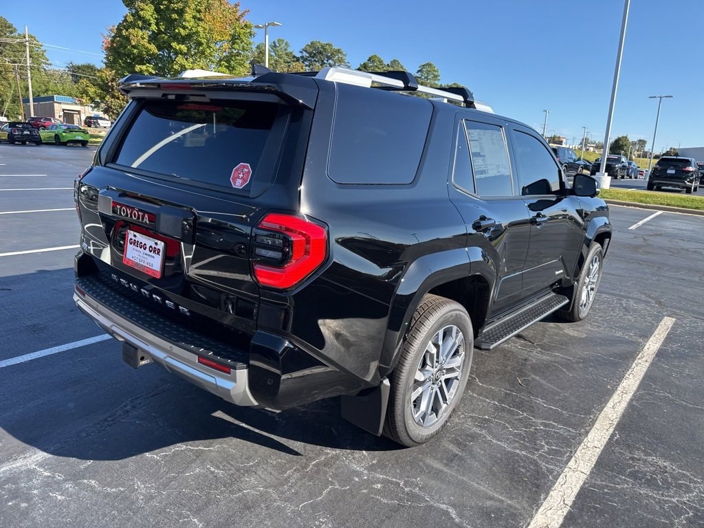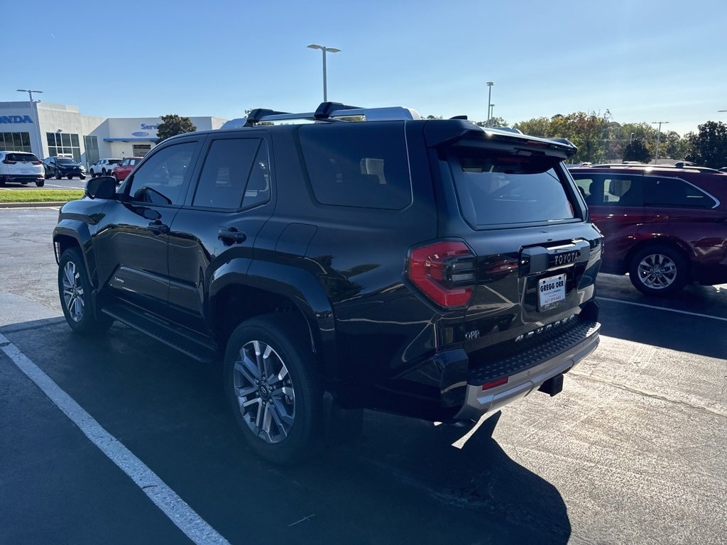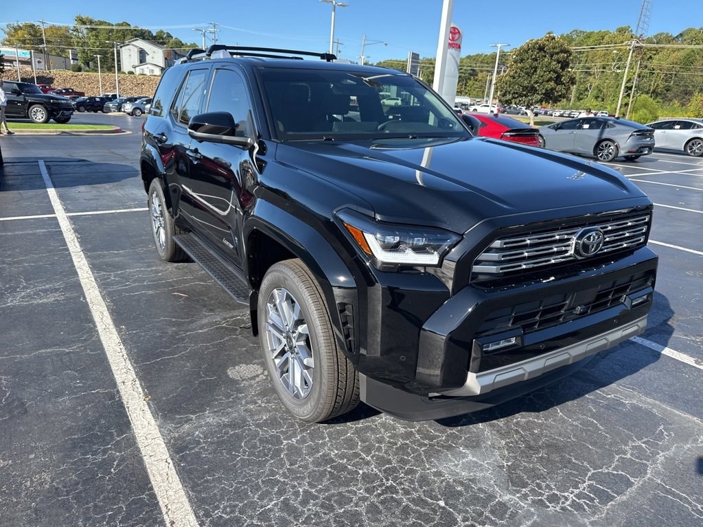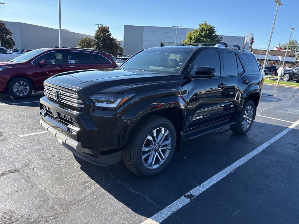 Black This 2025 Toyota 4Runner comes equipped with, 4WD, 45 Leather, 15 Speakers, 4-Wheel Disc Brakes, ABS brakes, Air Conditioning, Alloy wheels, AM/FM radio: SiriusXM, Anti-whiplash front head restraints, Apple CarPlay/Android Auto, Auto High-beam Headlights, Auto-dimming Rear-View mirror, Automatic temperature control, Brake assist, Bumpers: body-color, Compass, Delay-off headlights, Digital Key, Driver door bin, Driver vanity mirror, Dual front impact airbags, Dual front side impact airbags, Electronic Stability Control, Emergency communication system: Safety Connect (1-year trial), Exterior Parking Camera Rear, Front anti-roll bar, Front Bucket Seats, Front Center Armrest, Front dual zone A/C, Front fog lights, Front reading lights, Front wheel independent suspension, Fully automatic headlights, Heated & Ventilated Front Bucket Seats, Heated door mirrors, Heated front seats, Illuminated entry, Intelligent Inside Rear View Mirror, Knee airbag, Leather Seat Trim, Leather Shift Knob, Leather steering wheel, LED Liftgate Light, Limited, Low tire pressure warning, Memory seat, Moonroof, Navigation System, Occupant sensing airbag, Outside temperature display, Overhead airbag, Overhead console, Panic alarm, Passenger door bin, Passenger vanity mirror, Power door mirrors, Power driver seat, Power moonroof, Power passenger seat, Power steering, Power windows, Radio: 14" Audio, Rear anti-roll bar, Rear seat center armrest, Rear side impact airbag, Rear window defroster, Rear window wiper, Remote keyless entry, Security system, Speed control, Speed-sensing steering, Split folding rear seat, Spoiler, Steering wheel mounted audio controls, Tachometer, Telescoping steering wheel, Tilt steering wheel, Traction control, Trip computer, Turn signal indicator mirrors, Variably intermittent wipers, Ventilated front seats, Wheels: 20" Gray Painted Alloy, 4WD, 45 Leather.