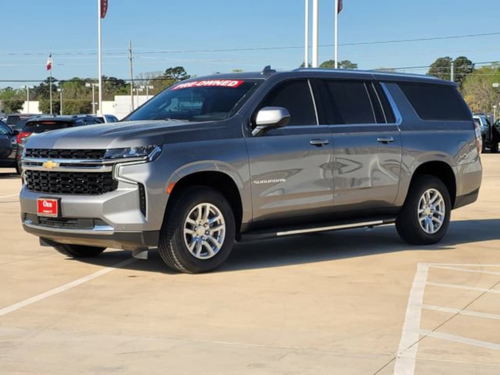 This 2021 Chevrolet Suburban comes equipped with Driver Alert Package (Front & Rear Park Assist, Lane Change Alert w/Side Blind Zone Alert, Lane Keep Assist w/Lane Departure Warning, and Rear Cross Traffic Alert), License Plate Front Mounting Package, Preferred Equipment Group 1LS (1st & 2nd Row Color-Keyed Carpeted Floor Mats, 2 USB Data Ports, Color-Keyed Carpeting Floor Covering, Driver & Front Outboard Passenger Airbags, Floor Console w/Storage Area, HD Radio, Infotainment Display, Leather-Wrapped Steering Wheel, LED Daytime Running Lamps, Remote Start, and SiriusXM Radio w/360L), 3.23 Rear Axle Ratio, 3rd row seats: split-bench, 4-Wheel Disc Brakes, 6 Speakers, ABS brakes, Air Conditioning, Alloy wheels, AM/FM radio: SiriusXM with 360L, Apple CarPlay/Android Auto, Auto High-beam Headlights, Automatic temperature control, Brake assist, Bumpers: body-color, Compass, Delay-off headlights, Driver door bin, Driver vanity mirror, Dual front impact airbags, Dual front side impact airbags, Electronic Stability Control, Emergency communication system: OnStar and Chevrolet connected services capable, Four wheel independent suspension, Front anti-roll bar, Front Bucket Seats, Front Center Armrest, Front dual zone A/C, Front reading lights, Fully automatic headlights, Heated door mirrors, Illuminated entry, Leather steering wheel, Low tire pressure warning, Occupant sensing airbag, Outside temperature display, Overhead airbag, Overhead console, Panic alarm, Passenger door bin, Passenger vanity mirror, Power door mirrors, Power driver seat, Power passenger seat, Power steering, Power windows, Premium audio system: Chevrolet Infotainment 3 Plus, Premium Cloth Seat Trim, Premium Smooth Ride Suspension, Radio: Chevrolet Infotainment 3 Plus System, Rain sensing wipers, Rear air conditioning, Rear anti-roll bar, Rear reading lights, Rear seat center armrest, Rear window defroster, Rear window wiper, Remote keyless entry, Roof rack: rails only, Security system, Speed control, Speed-sensing steering, Split folding rear seat, Spoiler, Steering wheel mounted audio controls, Tachometer, Telescoping steering wheel, Tilt steering wheel, Traction control, Trip computer, Variably intermittent wipers, Voltmeter, and Wheels: 18 x 8.5 Bright Silver Painted Aluminum. 1st & 2nd Row Color-Keyed Carpeted Floor Mats, 2 USB Data Ports, Color-Keyed Carpeting Floor Covering, Driver & Front Outboard Passenger Airbags, Driver Alert Package, Floor Console w/Storage Area, Front & Rear Park Assist, HD Radio, Infotainment Display, Lane Change Alert w/Side Blind Zone Alert, Lane Keep Assist w/Lane Departure Warning, Leather-Wrapped Steering Wheel, LED Daytime Running Lamps, License Plate Front Mounting Package, Preferred Equipment Group 1LS, Rear Cross Traffic Alert, Remote Start, SiriusXM Radio w/360L.Satin Steel Metallic 2021 Chevrolet Suburban LS EcoTec3 5.3L V8 RWD 10-Speed Automatic with OverdrivePlease see our hundreds of 4.5 Star Reviews on Google and Facebook. We also feature some truly incredible models for you to check out. We have an impressive Pre-Owned inventory that is full of the latest and greatest models, as well as a great selection of New inventory. We will make your purchase smooth and easy and we can provide great financing options on all of our inventory.