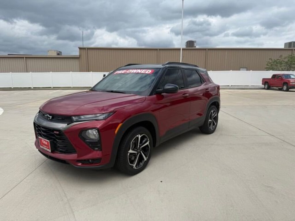This 2021 Chevrolet TrailBlazer comes equipped with Convenience Package (1 Type-A & 1 Type-C USB Charging-Only Ports, 120-Volt Power Outlet, 8 Diagonal Color Touchscreen Display, Cabin Humidity Sensor, Driver & Front Passenger Illuminated Vanity Mirrors, Inside Rear-View Auto-Dimming Mirror, Single-Zone Auto Climate Control Air Conditioning, and SiriusXM Radio), Driver Confidence Package (Lane Change Alert w/Side Blind Zone Alert, Rear Cross Traffic Alert, and Rear Park Assist), Preferred Equipment Group 1RS, Sun & Liftgate Package (Dual-Pane Panoramic Power Sunroof and Hands-Free Power Programmable Liftgate), Technology Package (4.2 Diagonal Multi-Color Driver Info Center, Adaptive Cruise Control, Bose Premium 7-Speaker Audio System Feature, HD Radio, HD Rear Vision Camera, LED Headlamps, Memory Card Receptacle, Radio: Chevrolet Infotainment 3 Plus System, SiriusXM w/360L, and Wireless Charging), 2-Way Power Driver Lumbar Seat Adjuster, 3.17 Axle Ratio, 4-Way Manual Front Passenger Seat Adjuster, 4-Wheel Disc Brakes, 6 Speakers, 6-Speaker Audio System Feature w/Amplifier, 8-Way Power Driver Seat Adjuster, ABS brakes, Air Conditioning, Alloy wheels, AM/FM radio, Apple CarPlay/Android Auto, Auto High-beam Headlights, Brake assist, Bumpers: body-color, Cloth w/Leatherette Seat Trim, Compass, Delay-off headlights, Driver door bin, Driver vanity mirror, Dual front impact airbags, Dual front side impact airbags, Electronic Stability Control, Emergency communication system: OnStar and Chevrolet connected services capable, Exterior Parking Camera Rear, Flat-Folding Front Passenger Seatback, Front anti-roll bar, Front Bucket Seats, Front Center Armrest, Front fog lights, Front License Plate Bracket, Front reading lights, Front wheel independent suspension, Fully automatic headlights, Heated door mirrors, Heated Driver & Front Passenger Seats, Heated front seats, Illuminated entry, Knee airbag, Leather Shift Knob, Leather steering wheel, Low tire pressure warning, Mosaic Black Metallic Two-Tone Roof, Occupant sensing airbag, Overhead airbag, Overhead console, Panic alarm, Passenger door bin, Passenger vanity mirror, Power door mirrors, Power driver seat, Power steering, Power windows, Radio data system, Radio: Chevrolet Infotainment 3 System, Rear seat center armrest, Rear side impact airbag, Rear window defroster, Rear window wiper, Remote keyless entry, Ride & Handling Suspension, Roof rack: rails only, Security system, Speed control, Split folding rear seat, Spoiler, Steering wheel mounted audio controls, Tachometer, Telescoping steering wheel, Tilt steering wheel, Traction control, Trip computer, Variably intermittent wipers, Wheels: 18 High Gloss Black Machined Aluminum, and Wireless Apple CarPlay/Android Auto. 26/30 City/Highway MPGScarlet Red Metallic 2021 Chevrolet TrailBlazer RS 1.3L Ecotec Turbo DOHC SIDI w/VVT AWD 9-Speed AutomaticPlease see our hundreds of 4.5 Star Reviews on Google and Facebook. We also feature some truly incredible models for you to check out. We have an impressive Pre-Owned inventory that is full of the latest and greatest models, as well as a great selection of New inventory. We will make your purchase smooth and easy and we can provide great financing options on all of our inventory.Awards:* 2021 IIHS Top Safety Pick+ * Ward's 10 Best Engines and Propulsion Systems