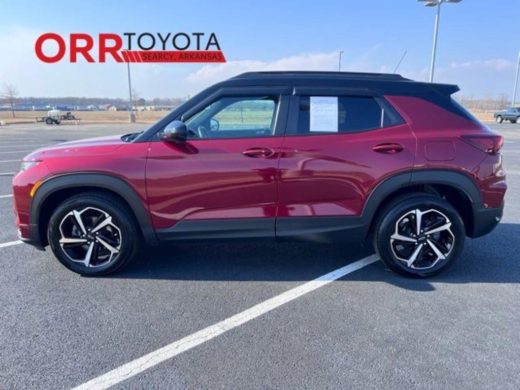 Crimson Metallic 2022 Chevrolet TrailBlazer RS FWD CVT 1.3L Ecotec Turbo DOHC SIDI w/VVT This TrailBlazer RS is nicely equipped with Preferred Equipment Group 1RS (Heated Steering Wheel), 2-Way Power Driver Lumbar Seat Adjuster, 4-Way Manual Front Passenger Seat Adjuster, 4-Wheel Disc Brakes, 5.45 Axle Ratio, 6 Speakers, 6-Speaker Audio System Feature, 8-Way Power Driver Seat Adjuster, ABS brakes, Air Conditioning, Alloy wheels, AM/FM radio: SiriusXM, Auto High-beam Headlights, Brake assist, Bumpers: body-color, Cloth w/Leatherette Seat Trim, Compass, Delay-off headlights, Driver door bin, Driver vanity mirror, Dual front impact airbags, Dual front side impact airbags, Electronic Stability Control, Emergency communication system: OnStar and Chevrolet connected services capable, Exterior Parking Camera Rear, Flat-Folding Front Passenger Seatback, Front anti-roll bar, Front Bucket Seats, Front Center Armrest, Front fog lights, Front License Plate Bracket, Front reading lights, Front wheel independent suspension, Fully automatic headlights, Heated door mirrors, Heated Driver & Front Passenger Seats, Heated front seats, Heated steering wheel, Illuminated entry, Knee airbag, Leather Shift Knob, Leather steering wheel, Low tire pressure warning, Mosaic Black Metallic Two-Tone Roof, Occupant sensing airbag, Overhead airbag, Overhead console, Panic alarm, Passenger door bin, Passenger vanity mirror, Power door mirrors, Power driver seat, Power steering, Power windows, Radio data system, Radio: Chevrolet Infotainment 3 System, Rear seat center armrest, Rear side impact airbag, Rear window defroster, Rear window wiper, Remote keyless entry, Ride & Handling Suspension, Roof rack: rails only, Security system, SiriusXM Radio, Speed control, Split folding rear seat, Spoiler, Steering wheel mounted audio controls, Tachometer, Telescoping steering wheel, Tilt steering wheel, Traction control, Trip computer, Variably intermittent wipers, Wheels: 18" High Gloss Black Machined Aluminum, and Wireless Apple CarPlay/Android Auto. Carfax no accidents, Back up camera, Bluetooth, Keyless entry.