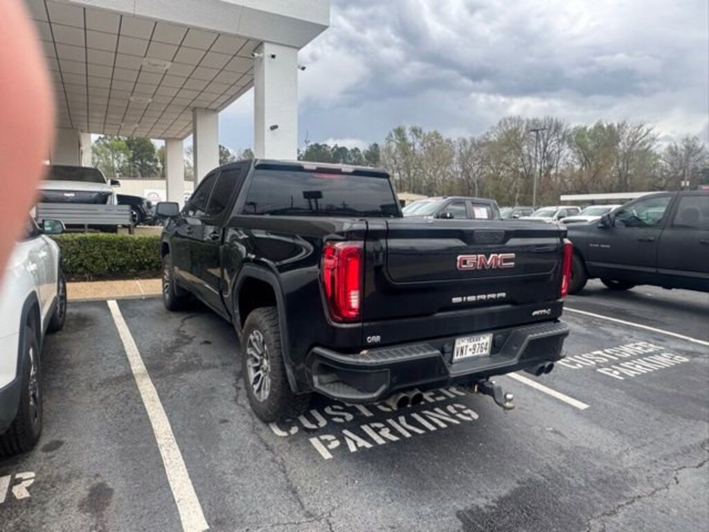 This 2020 GMC Sierra 1500 comes equipped with Driver Alert Package I (Lane Change Alert w/Side Blind Zone Alert, Perimeter Lighting, Rear Cross Traffic Alert, and Ultrasonic Front & Rear Park Assist), Preferred Equipment Group 4SB (12-Volt Rear Auxiliary Power Outlet, 120-Volt Bed Mounted Power Outlet, 120-Volt Instrument Panel Power Outlet, 170 Amp Alternator, 2 USB Ports, 2 USB Ports (1st Row), 4.2 Diagonal Color Display Driver Info Center, 4G LTE Wi-Fi Hotspot Capable, All-Weather Floor Liners w/AT4 Logo (LPO), Auxiliary External Transmission Oil Cooler, Body-Color Surround Grille, Color-Keyed Carpeting Floor Covering, Compass, Deep-Tinted Glass, Electric Rear-Window Defogger, Electrical Lock Control Steering Column, Floor-Mounted Center Console, GMC Connected Access Capable, HD Radio, HD Rear Vision Camera, Heated 2nd Row Outboard Seats, Heated Driver & Front Outboard Passenger Seating, Heavy-Duty Rear Locking Differential, High-Capacity Air Filter, Hill Descent Control, Hitch Guidance, Hitch Guidance w/Hitch View, In-Vehicle Trailering App, Integrated Trailer Brake Controller, Keyless Open & Start, LED Cargo Area Lighting, Manual Tilt-Wheel & Telescoping Steering Column, OnStar & GMC Connected Services Capable, Power Door Locks, Power Front Passenger Windows w/Express Up/Down, Power Front Windows w/Driver Express Up/Down, Power Rear Windows w/Express Down, ProGrade Trailering System, Rear Dual USB Charging-Only Ports, Rear Wheelhouse Liners, Red Recovery Hooks, Remote Vehicle Starter System, Spray-On Pickup Bed Liner w/AT4 Logo, Steering Wheel Audio Controls, Theft Deterrent System (Unauthorized Entry), and Ventilated Driver & Front Passenger Seats), Trailering Package, 10-Speed Automatic, 4WD, Jet Black With Kalahari Accents Leather, 10-Way Power Driver Seat Adjuster w/Lumbar, 10-Way Power Passenger Seat Adjuster w/Lumbar, 18 x 8.5 Machined Aluminum Wheels, 3.23 Rear Axle Ratio, 4-Wheel Disc Brakes, 6 Speakers, 6-Speaker Audio System Feature, ABS brakes, Air Conditioning, Alloy wheels, AM/FM radio: SiriusXM with 360L, Apple CarPlay/Android Auto, Auto-dimming door mirrors, Auto-dimming Rear-View mirror, Automatic temperature control, Brake assist, Bumpers: body-color, Delay-off headlights, Driver door bin, Driver Memory, Driver vanity mirror, Dual front impact airbags, Dual front side impact airbags, Electronic Stability Control, Front anti-roll bar, Front Bucket Seats, Front Center Armrest, Front dual zone A/C, Front fog lights, Front License Plate Kit, Front reading lights, Front wheel independent suspension, Fully automatic headlights, Heated door mirrors, Heated front seats, Heated rear seats, Heated steering wheel, High Gloss Black Mirror Caps, Illuminated entry, Low tire pressure warning, Memory seat, Occupant sensing airbag, Off-Road Suspension, Outside temperature display, Overhead airbag, Overhead console, Panic alarm, Passenger door bin, Passenger vanity mirror, Perforated Leather-Appointed Front Seat Trim, Power door mirrors, Power driver seat, Power passenger seat, Power steering, Power windows, Premium audio system: GMC Infotainment System, Radio data system, Radio: Premium GMC Infotainment Sys w/Multi-Touch, Rear reading lights, Rear seat center armrest, Rear step bumper, Rear window defroster, Remote keyless entry, Security system, SiriusXM w/360L, Speed control, Speed-sensing steering, Split folding rear seat, Steering wheel mounted audio controls, Tachometer, Telescoping steering wheel, Tilt steering wheel, Traction control, Trip computer, Variably intermittent wipers, Ventilated front seats, and Voltmeter. 10-Speed Automatic, 4WD, Jet Black With Kalahari Accents Leather.