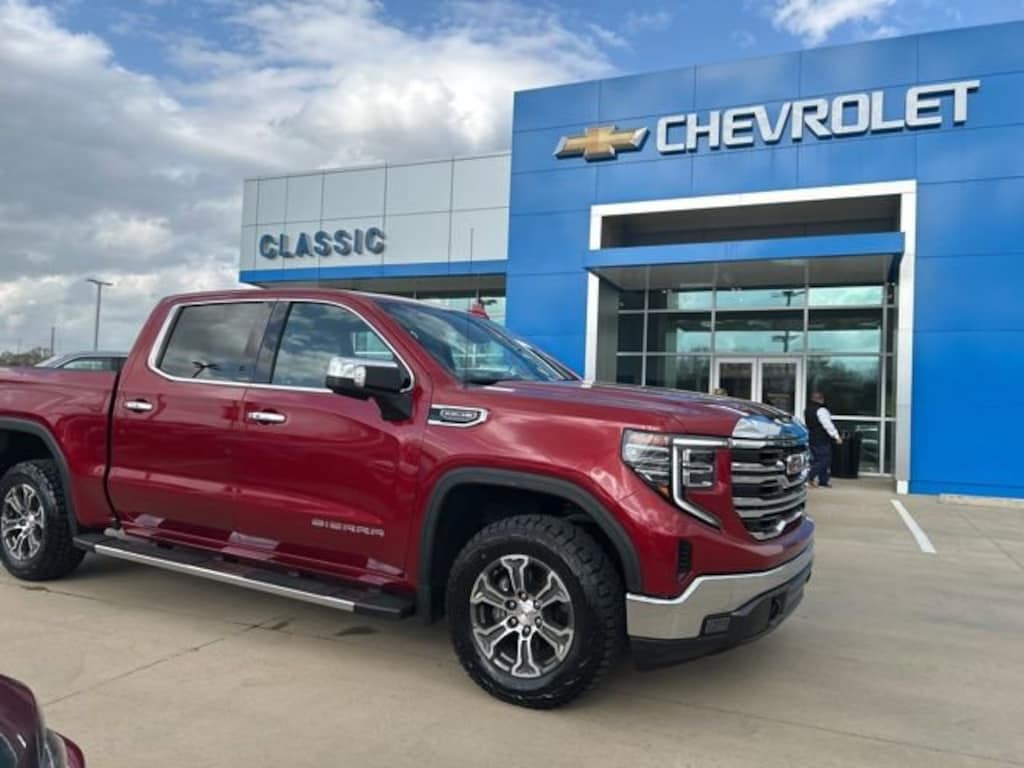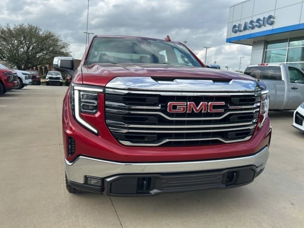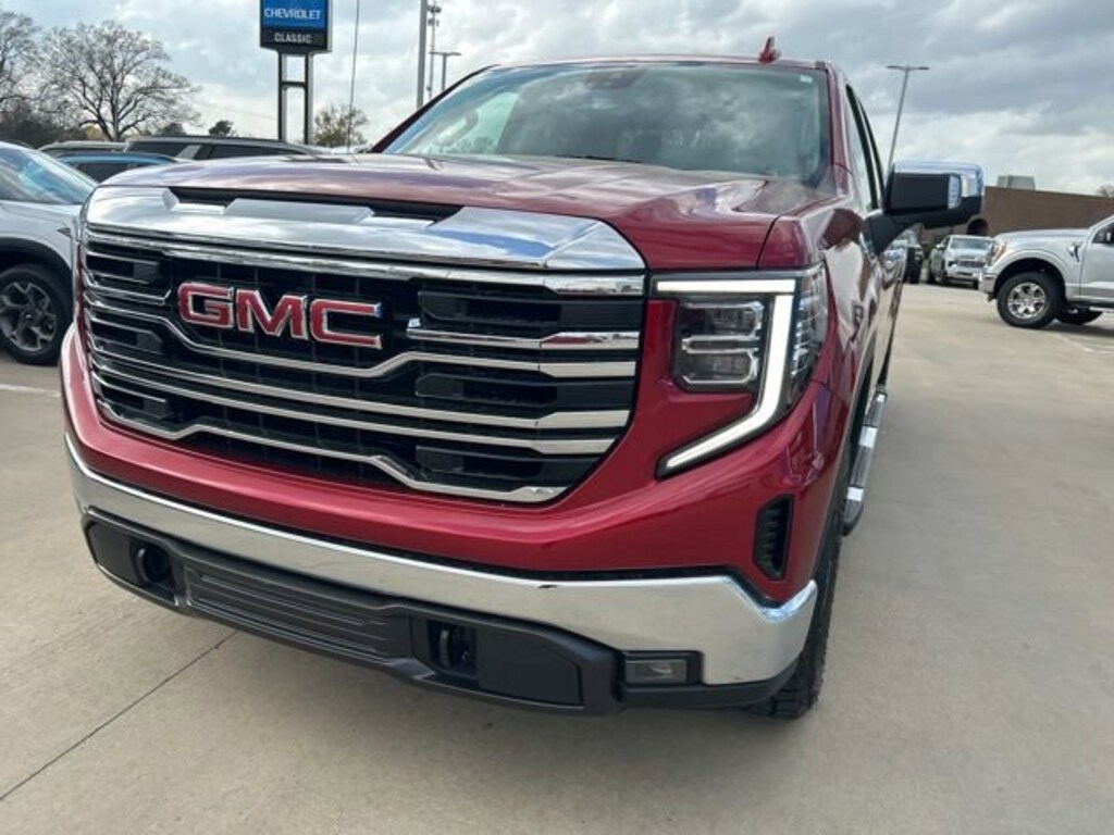 CARFAX One-Owner. Volcanic Red 2024 GMC Sierra 1500 SLT EcoTec3 5.3L V8 4WD 10-Speed Automatic The 2024 GMC Sierra 1500 comes with the following features; Preferred Equipment Group 4SA (120-Volt Bed Mounted Power Outlet, 120-Volt Interior Power Outlet, 170 Amp Alternator, 2 Charge/Data USB Ports, 2 Type-C Charge-Only Rear USB Ports, 6-Speaker Audio System Feature, Auto-Locking Rear Differential, Auxiliary External Transmission Oil Cooler, Chrome Header & Chrome Grille Insert Bars, Color-Keyed Carpeting Floor Covering, Deep-Tinted Glass, Electric Rear-Window Defogger, Front Frame-Mounted Black Recovery Hooks, Front Rain-Sensing Wipers, GMC Connected Access Capable, HD Rear Vision Camera, Keyless Open & Start, LED Cargo Area Lighting, Manual Tilt-Wheel & Telescoping Steering Column, OnStar & GMC Connected Services Capable, Perimeter Lighting, Power Door Locks, Power Front Passenger Windows w/Express Up/Down, Power Front Windows w/Driver Express Up/Down, Power Rear Windows w/Express Down, Push Button Start, Rear Wheelhouse Liners, Remote Vehicle Starter System, SiriusXM w/360L, Steering Wheel Audio Controls, Theft Deterrent System (Unauthorized Entry), and Wi-Fi Hotspot Capable), Standard Suspension Package, Trailering Package (Hitch Guidance), 10-Speed Automatic, 4WD, Black Leather, 10-Way Power Driver Seat Adjuster w/Lumbar, 10-Way Power Passenger Seat Adjuster w/Lumbar, 3.23 Rear Axle Ratio, 4-Wheel Disc Brakes, 6 Speakers, ABS brakes, Air Conditioning, All-Weather Floor Liner (LPO), Alloy wheels, AM/FM radio: SiriusXM with 360L, Apple CarPlay/Android Auto, Auto High-beam Headlights, Auto-dimming door mirrors, Auto-dimming Rear-View mirror, Automatic Emergency Braking, Automatic temperature control, Brake assist, Buckle to Drive, Bumpers: chrome, Chrome Wheel To Wheel Assist Steps, Compass, Delay-off headlights, Driver door bin, Driver Memory, Driver vanity mirror, Dual front impact airbags, Dual front side impact airbags, Electronic Stability Control, Following Distance Indicator, Forward Collision Alert, Front 40/20/40 Split-Bench Seat, Front anti-roll bar, Front Center Armrest w/Storage, Front dual zone A/C, Front fog lights, Front Pedestrian Braking, Front reading lights, Front wheel independent suspension, Fully automatic headlights, Heated door mirrors, Heated Driver & Front Outboard Passenger Seating, Heated front seats, Heated steering wheel, Illuminated entry, IntelliBeam Automatic High Beam On/Off, Lane Keep Assist w/Lane Departure Warning, Low tire pressure warning, Memory seat, Navigation System, Occupant sensing airbag, Outside temperature display, Overhead airbag, Overhead console, Panic alarm, Passenger door bin, Passenger vanity mirror, Perf Leather-Appointed Front Outboard Seat Trim, Power door mirrors, Power driver seat, Power passenger seat, Power steering, Power windows, Premium audio system: GMC Infotainment System, Radio data system, Radio: Premium GMC Infotainment Audio System, Rain sensing wipers, Rear reading lights, Rear seat center armrest, Rear step bumper, Rear window defroster, Remote keyless entry, Security system, Speed control, Speed-sensing steering, Split folding rear seat, Steering wheel mounted audio controls, Tachometer, Telescoping steering wheel, Tilt steering wheel, Traction control, Trip computer, Variably intermittent wipers, Voltmeter, Wheels: 18 x 8.5 6-Spoke Machined Aluminum, and Wireless Apple CarPlay/Wireless Android Auto. 10-Speed Automatic, 4WD, Black Leather.