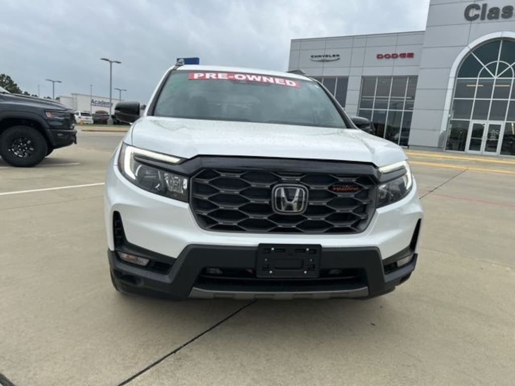 CARFAX One-Owner. Clean CARFAX. Classic CDJR in Texarkana is proud to offer this terrific 2022 Honda Passport in Platinum White Pearl. This 2022 Honda Passport comes with the following features; 4-Wheel Disc Brakes, 4.334 Axle Ratio, 7 Speakers, A/V remote: CabinControl, ABS brakes, Air Conditioning, Alloy wheels, AM/FM radio: SiriusXM, Apple CarPlay/Android Auto, Auto High-beam Headlights, Auto-dimming Rear-View mirror, Automatic temperature control, Blind Spot Information (BSI) System warning, Brake assist, Bumpers: body-color, Compass, Delay-off headlights, Driver door bin, Driver vanity mirror, Driver's Seat Mounted Armrest, Dual front impact airbags, Dual front side impact airbags, Electronic Stability Control, Emergency communication system: HondaLink Assist, Exterior Parking Camera Rear, Forward collision: Collision Mitigation Braking System (CMBS) + FCW mitigation, Four wheel independent suspension, Front anti-roll bar, Front Bucket Seats, Front Center Armrest, Front dual zone A/C, Front fog lights, Front reading lights, Fully automatic headlights, Garage door transmitter: HomeLink, Heated door mirrors, Heated Front Bucket Seats, Heated front seats, Illuminated entry, Lane departure: Lane Keeping Assist System (LKAS) active, Leather-Trimmed Seats w/Orange Stitching, Low tire pressure warning, Memory seat, Navigation system: Honda Satellite-Linked Navigation System, Occupant sensing airbag, Outside temperature display, Overhead airbag, Overhead console, Panic alarm, Passenger door bin, Passenger seat mounted armrest, Passenger vanity mirror, Power door mirrors, Power driver seat, Power Liftgate, Power moonroof, Power passenger seat, Power steering, Power windows, Radio data system, Radio: 215-Watt Audio System w/7 Speakers, Rear air conditioning, Rear anti-roll bar, Rear reading lights, Rear seat center armrest, Rear window defroster, Rear window wiper, Remote keyless entry, Roof rack: rails only, Security system, Speed control, Speed-sensing steering, Split folding rear seat, Spoiler, Steering wheel mounted audio controls, Tachometer, Telescoping steering wheel, Tilt steering wheel, Traction control, Trip computer, Turn signal indicator mirrors, Variably intermittent wipers, and Wheels: 18" Machine-Finish Alloy.