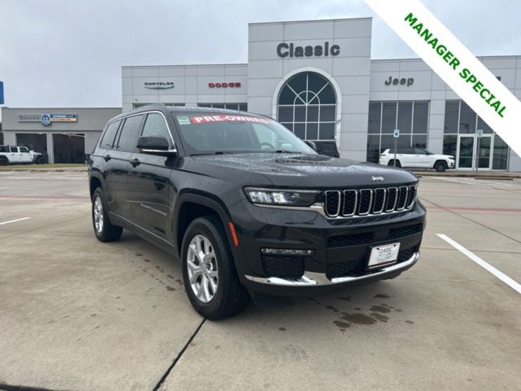 Classic CDJR in Texarkana is proud to offer this attractive-looking 2023 Jeep Grand Cherokee L in Rocky Mountain Pearlcoat. This 2023 Jeep Grand Cherokee L comes with the following features; Quick Order Package 23E, 3.45 Rear Axle Ratio, 3rd row seats: split-bench, 4-Wheel Disc Brakes, 506 Watt Amplifier, 6 Speakers, 9 Amplified Speakers w/Subwoofer, ABS brakes, Active Noise Control System, Air Conditioning, Alloy wheels, AM/FM radio: SiriusXM with 360L, Anti-whiplash front head restraints, Audio memory, Auto High-beam Headlights, Automatic temperature control, Brake assist, Bumpers: body-color, Capri Leatherette Seats, Compass, Delay-off headlights, Driver door bin, Driver vanity mirror, Dual front impact airbags, Dual front side impact airbags, Electronic Stability Control, Emergency communication system, Four wheel independent suspension, Front anti-roll bar, Front Bucket Seats, Front Center Armrest w/Storage, Front dual zone A/C, Front fog lights, Front License Plate Bracket, Front reading lights, Fully automatic headlights, Garage door transmitter, Heated door mirrors, Heated front seats, Heated rear seats, Heated steering wheel, Illuminated entry, Knee airbag, Low tire pressure warning, Manual Fold Seatbacks, Memory seat, Molded In Color Black/Gloss Black Roof Rails, Navigation System, Normal Duty Suspension, Occupant sensing airbag, Outside temperature display, Overhead airbag, Overhead console, Panic alarm, ParkView Rear Back-Up Camera, Passenger door bin, Passenger vanity mirror, Power door mirrors, Power driver seat, Power Liftgate, Power passenger seat, Power steering, Power windows, Radio data system, Radio: Uconnect 5 Nav w/10.1" Display, Rear air conditioning, Rear anti-roll bar, Rear reading lights, Rear window defroster, Rear window wiper, Reclining 3rd row seat, Remote keyless entry, Security system, Speed control, Speed-Sensitive Wipers, Split folding rear seat, Spoiler, Steering wheel mounted audio controls, Tachometer, Telescoping steering wheel, Tilt steering wheel, Traction control, Trip computer, Turn signal indicator mirrors, Variably intermittent wipers, Voltmeter, and Wheels: 18" x 8.0" Fully Painted Aluminum.