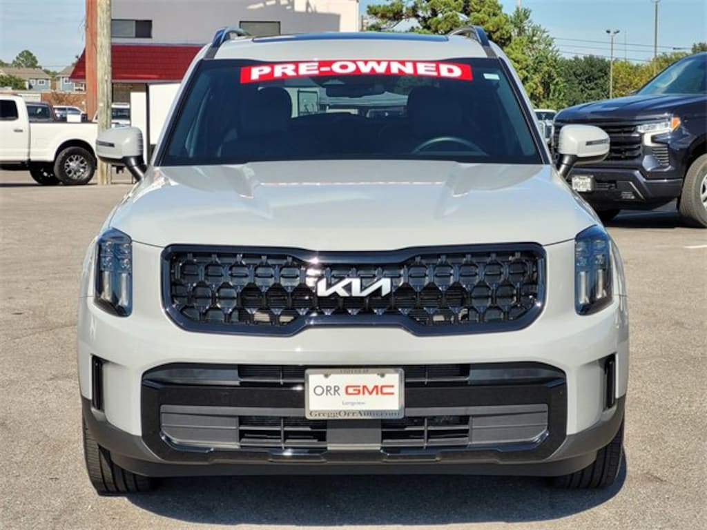 This 2024 Kia Telluride comes equipped with 3.648 Axle Ratio, 3rd row seats: split-bench, 4-Wheel Disc Brakes, 6 Speakers, ABS brakes, Air Conditioning, Alloy wheels, AM/FM radio: SiriusXM, Apple CarPlay & Android Auto, Auto High-beam Headlights, Auto-dimming Rear-View mirror, Auto-leveling suspension, Automatic temperature control, Brake assist, Bumpers: body-color, Cargo Cover, Cargo Tray Seat Back, Carpet Floor Mats, Compass, Cross Bars X-Line, Delay-off headlights, Driver door bin, Driver vanity mirror, Dual front impact airbags, Dual front side impact airbags, Electronic Stability Control, Emergency communication system: 911 Connect, Exterior Parking Camera Rear, Four wheel independent suspension, Front anti-roll bar, Front Bucket Seats, Front Center Armrest, Front dual zone A/C, Front reading lights, Fully automatic headlights, Heated & Ventilated Front Bucket Seats, Heated door mirrors, Heated front seats, Heated steering wheel, Hybrid Cargo Net, Illuminated entry, Knee airbag, Leather Seat Trim, Leather Shift Knob, Leather steering wheel, Low tire pressure warning, Navigation System, Occupant sensing airbag, Outside temperature display, Overhead airbag, Overhead console, Panic alarm, Passenger door bin, Passenger vanity mirror, Power door mirrors, Power driver seat, Power Liftgate, Power moonroof, Power passenger seat, Power steering, Power windows, Radio data system, Radio: AM/FM Display Audio System, Rear air conditioning, Rear anti-roll bar, Rear audio controls, Rear reading lights, Rear side impact airbag, Rear window defroster, Rear window wiper, Reclining 3rd row seat, Remote keyless entry, Roof rack: rails only, Security system, Smart Key w/ Push Button and Remote Start, Speed control, Speed-sensing steering, Split folding rear seat, Spoiler, Steering wheel mounted audio controls, Tachometer, Telescoping steering wheel, Tilt steering wheel, Traction control, Trip computer, Turn signal indicator mirrors, Variably intermittent wipers, Ventilated front seats, and Wheels: 20 x 7.5 Black Finish X-LINE Exclusive. CARFAX One-Owner. Clean CARFAX.