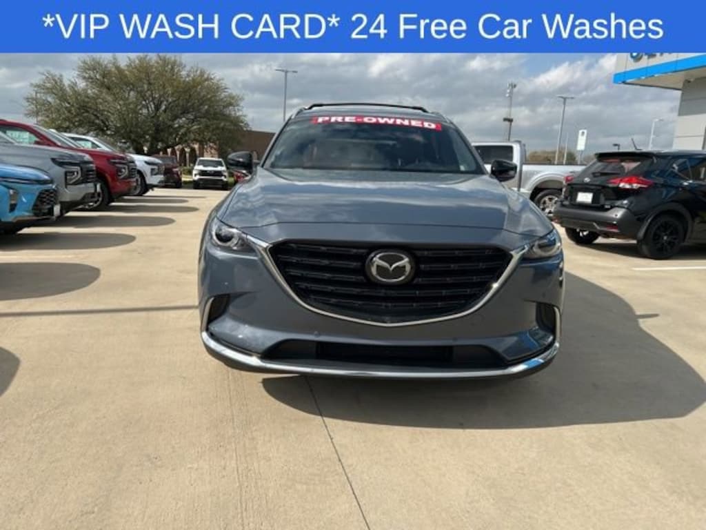 CARFAX One-Owner. 20/26 City/Highway MPG Gray Metallic 2022 Mazda CX-9 Carbon Edition 2.5L 4-Cylinder AWD 6-Speed Automatic The 2022 Mazda CX-9 comes with the following features; AWD, 12 Speakers, 3rd row seats: bench, 4-Wheel Disc Brakes, 4.411 Axle Ratio, ABS brakes, Air Conditioning, Alloy wheels, AM/FM radio: SiriusXM, AppLink/Apple CarPlay and Android Auto, Auto High-beam Headlights, Auto-dimming Rear-View mirror, Automatic temperature control, Black Lug Nuts & Black Wheel Locks, Brake assist, Bumpers: body-color, Compass, Delay-off headlights, Driver door bin, Driver vanity mirror, Dual front impact airbags, Dual front side impact airbags, E911 Automatic Emergency Notification, Electronic Stability Control, Emergency communication system: MAZDA CONNECT, Exterior Parking Camera Rear, Four wheel independent suspension, Front anti-roll bar, Front Bucket Seats, Front Center Armrest, Front dual zone A/C, Front fog lights, Front reading lights, Fully automatic headlights, Garage door transmitter: HomeLink, Heated door mirrors, Heated front seats, Heated rear seats, Heated steering wheel, Heated/Ventilated Front Bucket Seats, Illuminated entry, Infotainment System Voice Command, Leather Seat Trim, Leather Shift Knob, Leather steering wheel, Low tire pressure warning, Mazda Connected Services, Memory seat, Occupant sensing airbag, Outside temperature display, Overhead airbag, Overhead console, Pandora Internet Radio Integration, Panic alarm, Passenger door bin, Passenger vanity mirror, Power door mirrors, Power driver seat, Power Liftgate, Power moonroof, Power passenger seat, Power steering, Power windows, Radio Broadcast Data System Program Information, Radio data system, Radio: AM/FM Sound System w/Bose Audio, Rain sensing wipers, Rear air conditioning, Rear anti-roll bar, Rear reading lights, Rear window defroster, Rear window wiper, Remote keyless entry, Roof Rack & Cross Bars, Roof rack: rails only, SiriusXM Satellite Radio, SMS Text Msg Audio Delivery & Reply, Speed control, Speed-sensing steering, Split folding rear seat, Spoiler, Steering wheel mounted audio controls, Tachometer, Telescoping steering wheel, Tilt steering wheel, Traction control, Trip computer, Turn signal indicator mirrors, Variably intermittent wipers, Ventilated front seats, and Wheels: 20 x 8.5J Aluminum Alloy. AWD.