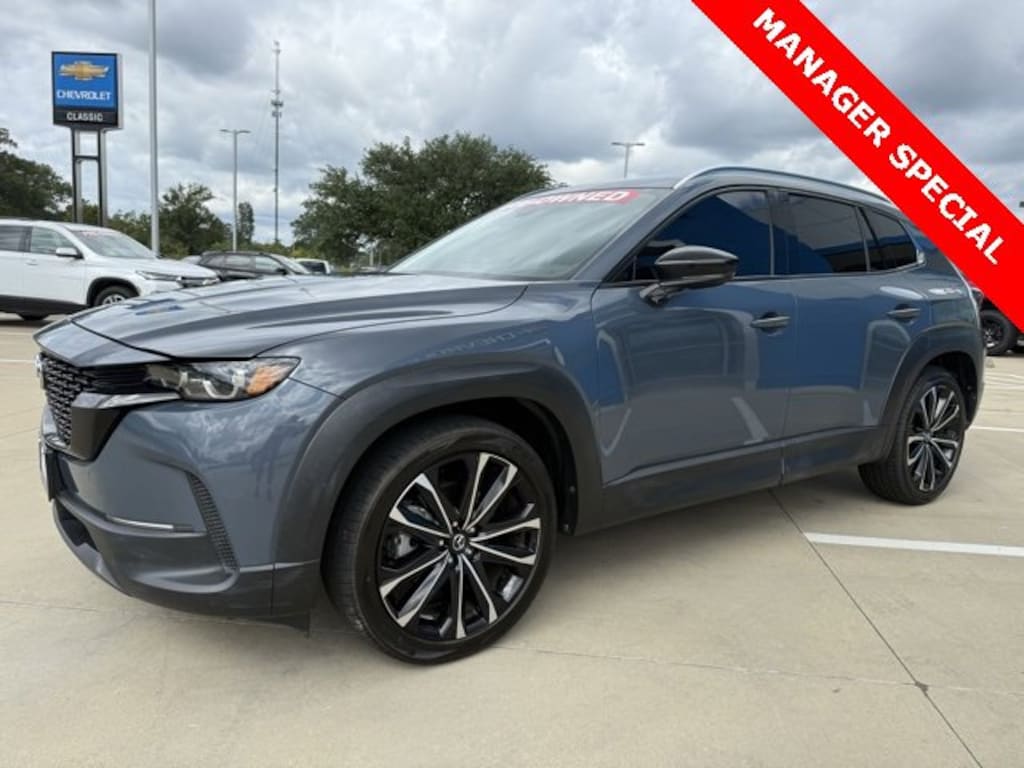 CARFAX One-Owner. Clean CARFAX. 24/30 City/Highway MPG Polymetal Gray Metallic 2023 Mazda CX-50 2.5 S Premium Plus Package SKYACTIV® 2.5L 4-Cylinder DOHC 16V AWD 6-Speed Automatic The 2023 Mazda CX-50 comes with the following features; Cargo Package (Cargo Blocks), 12 Speakers, 20 x 8J Aluminum Alloy Wheels, 4-Wheel Disc Brakes, 4.367 Axle Ratio, ABS brakes, Air Conditioning, Alloy wheels, AM/FM radio: SiriusXM, AppLink/Apple CarPlay and Android Auto, Auto High-beam Headlights, Auto-dimming Rear-View mirror, Automatic temperature control, Black Lug Nuts & Black Wheel Locks, Brake assist, Bumpers: body-color, Carpet Cargo Mat, Delay-off headlights, Driver door bin, Driver vanity mirror, Dual front impact airbags, Dual front side impact airbags, Electronic Stability Control, Emergency communication system: MAZDA CONNECT, Exterior Parking Camera Rear, Front anti-roll bar, Front Bucket Seats, Front Center Armrest w/Storage, Front dual zone A/C, Front reading lights, Front wheel independent suspension, Fully automatic headlights, Garage door transmitter: HomeLink, Heads-Up Display, Heated & Ventilated Front Bucket Seats, Heated door mirrors, Heated front seats, Illuminated entry, Knee airbag, Leather Seat Trim, Leather Shift Knob, Leather steering wheel, Low tire pressure warning, Memory seat, Occupant sensing airbag, Outside temperature display, Overhead airbag, Overhead console, Panic alarm, Passenger door bin, Passenger vanity mirror, Polymetal Gray Metallic Paint Charge, Power door mirrors, Power driver seat, Power Liftgate, Power moonroof, Power passenger seat, Power steering, Power windows, Radio data system, Radio: AM/FM/HD Audio System, Rain sensing wipers, Rear seat center armrest, Rear window defroster, Rear window wiper, Remote keyless entry, Roof rack: xxxxxx, Speed control, Speed-sensing steering, Split folding rear seat, Spoiler, Steering wheel mounted audio controls, Tachometer, Telescoping steering wheel, Tilt steering wheel, Traction control, Trip computer, Turn signal indicator mirrors, Variably intermittent wipers, and Ventilated front seats. One owner Carfax, Carfax no accidents, Back up camera, Bluetooth, Keyless entry, Remote start.
