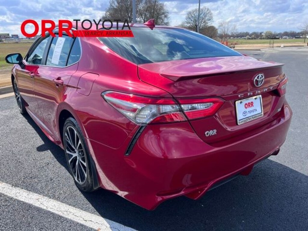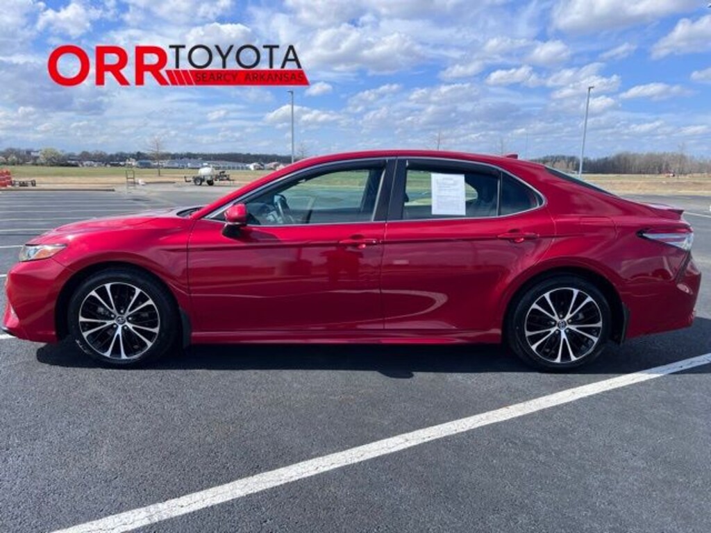 Ruby Flare Pearl 2019 Toyota Camry SE FWD 8-Speed Automatic 2.5L I4 DOHC 16V This Camry SE is nicely equipped with Black w/Fabric Seat Trim w/SofTex, 4-Wheel Disc Brakes, 6 Speakers, ABS brakes, Air Conditioning, Alloy wheels, AM/FM radio, Apple CarPlay, Auto High-beam Headlights, Automatic temperature control, Brake assist, Bumpers: body-color, Delay-off headlights, Driver door bin, Driver vanity mirror, Dual front impact airbags, Dual front side impact airbags, Electronic Stability Control, Emergency communication system: Safety Connect, Exterior Parking Camera Rear, Fabric Seat Trim w/SofTex, Four wheel independent suspension, Front anti-roll bar, Front Bucket Seats, Front Bucket Sport Seats, Front Center Armrest, Front reading lights, Fully automatic headlights, Illuminated entry, Knee airbag, Leather Shift Knob, Low tire pressure warning, Occupant sensing airbag, Outside temperature display, Overhead airbag, Overhead console, Panic alarm, Passenger door bin, Passenger vanity mirror, Power door mirrors, Power driver seat, Power steering, Power windows, Radio data system, Radio: Entune 3.0 Audio Plus w/App Suite, Radio: Entune 3.0 Audio w/App Suite, Rear anti-roll bar, Rear reading lights, Rear seat center armrest, Rear side impact airbag, Rear window defroster, Remote keyless entry, Security system, Speed control, Speed-sensing steering, Split folding rear seat, Spoiler, Sport steering wheel, Steering wheel mounted audio controls, Tachometer, Telescoping steering wheel, Tilt steering wheel, Traction control, Trip computer, Variably intermittent wipers, and Wheels: 8.0J x 18" Black Machined-Finish Alloy. Carfax no accidents, Back up camera, Bluetooth, Keyless entry, Black w/Fabric Seat Trim w/SofTex.