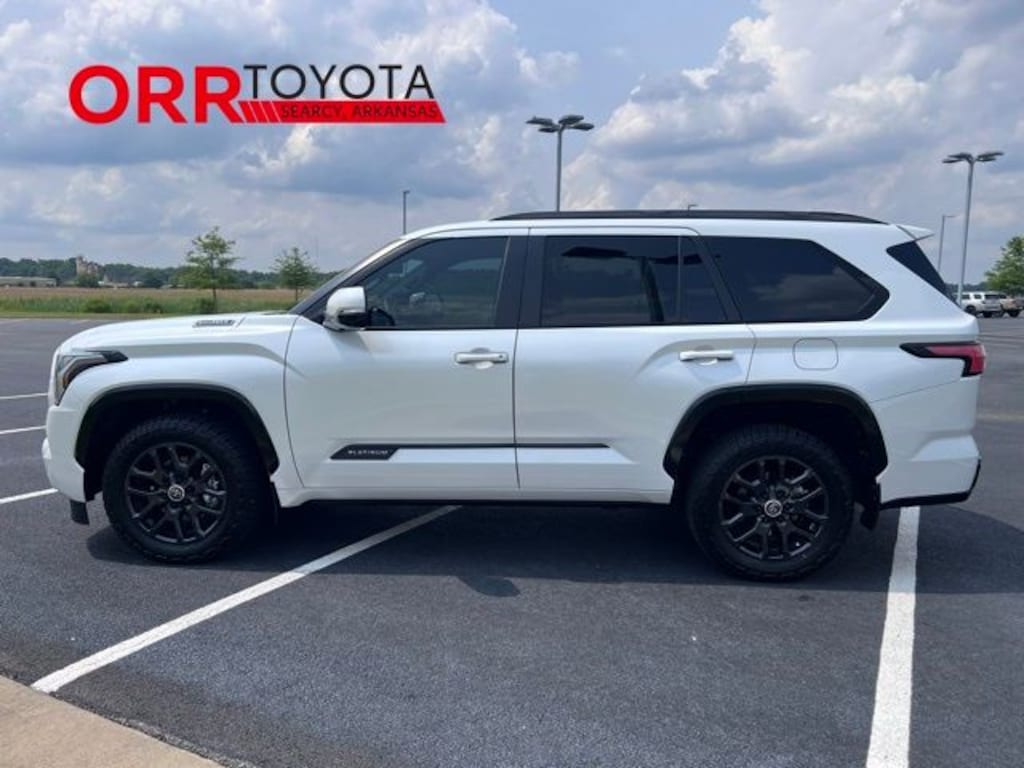 Wind Chill Pearl 2024 Toyota Sequoia Platinum 4WD 10-Speed Automatic V6 Hybrid This Sequoia Platinum is nicely equipped with V6 Hybrid, 10-Speed Automatic, 4WD, ABS brakes, Active Cruise Control, Alloy wheels, Compass, Electronic Stability Control, Front dual zone A/C, Heated & Ventilated Front Seats, Heated door mirrors, Heated front seats, Heated rear seats, Illuminated entry, Leather Seat Trim, Low tire pressure warning, Power Liftgate, Power moonroof, Remote keyless entry, Traction control, 14 Speakers, 3.31 Axle Ratio, 3rd row seats: split-bench, 4-Wheel Disc Brakes, Air Conditioning, AM/FM radio: SiriusXM, Anti-whiplash front head restraints, Apple CarPlay/Android Auto, Auto High-beam Headlights, Auto tilt-away steering wheel, Auto-dimming door mirrors, Auto-dimming Rear-View mirror, Automatic temperature control, Brake assist, Bumpers: body-color, Cast Aluminum Step & Step Cover, Delay-off headlights, Driver door bin, Driver vanity mirror, Dual front impact airbags, Dual front side impact airbags, Emergency communication system: Safety Connect (10-year trial), Exterior Parking Camera Rear, Front anti-roll bar, Front Bucket Seats, Front Center Armrest w/Storage, Front fog lights, Front reading lights, Front wheel independent suspension, Fully automatic headlights, Garage door transmitter: HomeLink, Headlight cleaning, Heated steering wheel, Knee airbag, Leather steering wheel, Memory seat, Navigation system: Drive Connect (1 year trial) includes Cloud Navigation with real time traffic and Google POI, Occupant sensing airbag, Outside temperature display, Overhead airbag, Overhead console, Panic alarm, Passenger door bin, Passenger vanity mirror, Power door mirrors, Power driver seat, Power passenger seat, Power steering, Power windows, Premium audio system: JBL, Radio: JBL Premium Audio System, Rain sensing wipers, Rear air conditioning, Rear reading lights, Rear seat center armrest, Rear window defroster, Rear window wiper, Reclining 3rd row seat, Security system, Speed control, Speed-sensing steering, Split folding rear seat, Spoiler, Steering wheel mounted audio controls, Tachometer, Telescoping steering wheel, Tilt steering wheel, Trip computer, Turn signal indicator mirrors, Variably intermittent wipers, Ventilated front seats, Ventilated rear seats, Voltmeter, and Wheels: 20" Machined-Finish Black Alloy. V6 Hybrid, 10-Speed Automatic, 4WD, ABS brakes, Active Cruise Control, Alloy wheels, Compass, Electronic Stability Control, Front dual zone A/C, Heated & Ventilated Front Seats, Heated door mirrors, Heated front seats, Heated rear seats, Illuminated entry, Leather Seat Trim, Low tire pressure warning, Power Liftgate, Power moonroof, Remote keyless entry, Traction control.