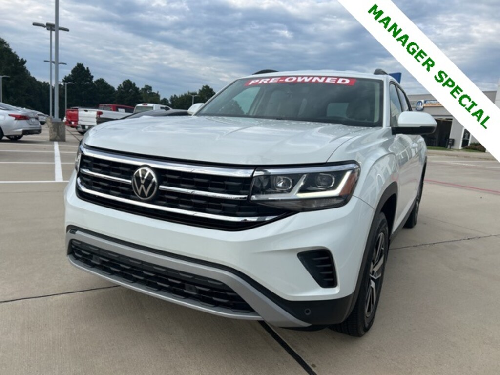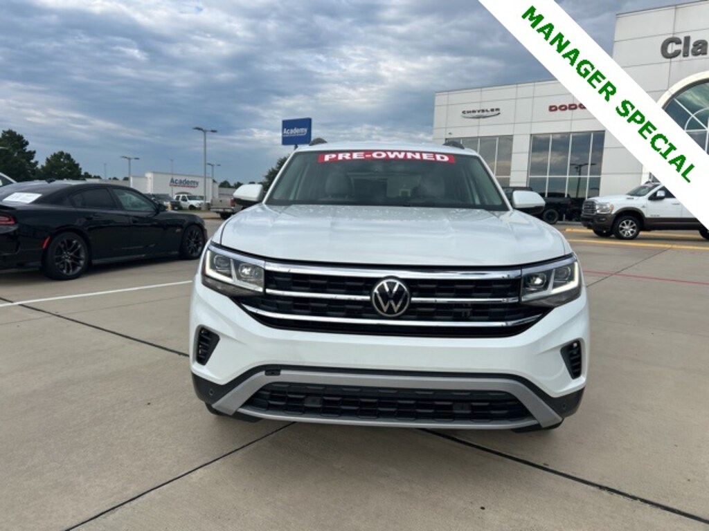 Classic CDJR in Texarkana is proud to offer this charming 2022 Volkswagen Atlas in Pure White. This 2022 Volkswagen Atlas comes with the following features; 3.60 Axle Ratio, 3rd row seats: split-bench, 4-Wheel Disc Brakes, 6 Speakers, ABS brakes, Air Conditioning, Alloy wheels, AM/FM radio: SiriusXM with 360L, Auto-dimming Rear-View mirror, Automatic temperature control, Brake assist, Bumpers: body-color, Compass, Delay-off headlights, Driver door bin, Driver vanity mirror, Dual front impact airbags, Dual front side impact airbags, Electronic Stability Control, Emergency communication system, Exterior Parking Camera Rear, Four wheel independent suspension, Front anti-roll bar, Front Bucket Seats, Front Center Armrest, Front dual zone A/C, Front fog lights, Front reading lights, Fully automatic headlights, Heated Comfort Front Bucket Seats, Heated door mirrors, Heated front seats, Illuminated entry, Leather Shift Knob, Low tire pressure warning, Occupant sensing airbag, Outside temperature display, Overhead airbag, Overhead console, Panic alarm, Passenger door bin, Passenger vanity mirror, Perforated V-Tex Leatherette Seating Surfaces, Power door mirrors, Power driver seat, Power Liftgate, Power steering, Power windows, Radio data system, Radio: MIB3 Composition Media w/8" Touchscreen, Rain sensing wipers, Rear air conditioning, Rear anti-roll bar, Rear reading lights, Rear seat center armrest, Rear window defroster, Rear window wiper, Remote keyless entry, Roof rack: rails only, Security system, Speed control, Speed-sensing steering, Split folding rear seat, Spoiler, Standard Suspension, Steering wheel mounted audio controls, Tachometer, Telescoping steering wheel, Tilt steering wheel, Traction control, Trip computer, Turn signal indicator mirrors, Variably intermittent wipers, and Wheels: 20" x 8J 5-Spoke Silver Painted Alloy.